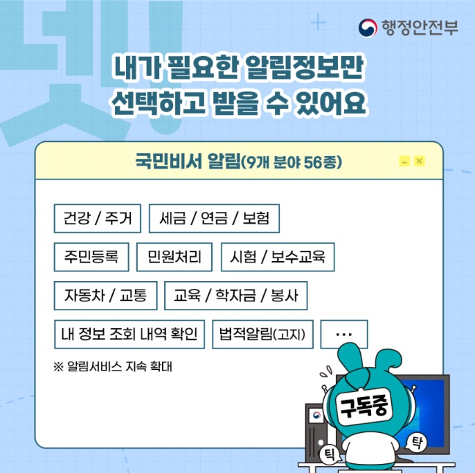 이름 그대로 국민의 ‘비서’ 역할을 하면서, 세금 납부 기한, 건강검진 시기, 각종 보조금·지원금 신청 안내 등 꼭 챙겨야 할 정보를 사전에 알려줍니다.